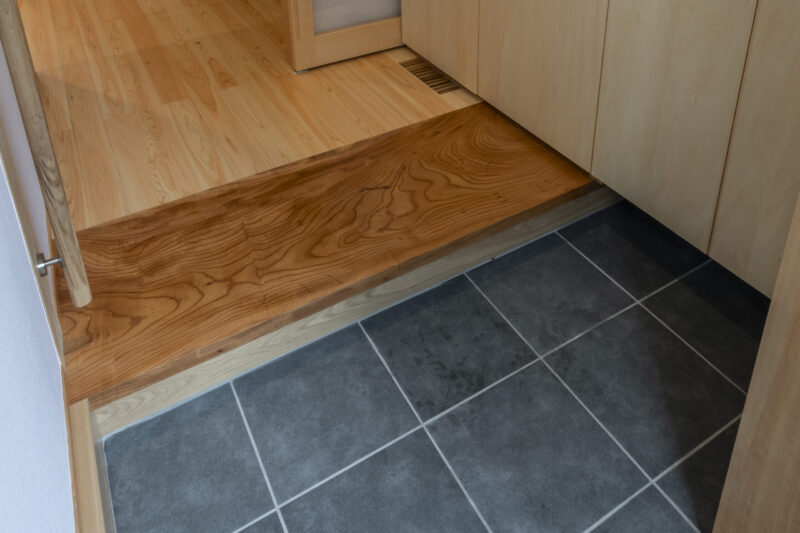 そんな「ふじの家 - ふじのや –」の玄関框には、お建て替えの前のお住まいから採用した欅の古材があしらわれています。