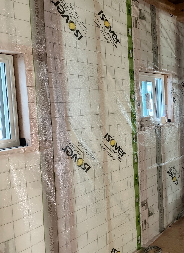 このグラスウールの後は、室内側に気密シートを施工します👇