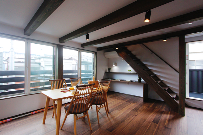 1・2階ともに床にはウォールナットの木を使用しています。(床暖房付き)