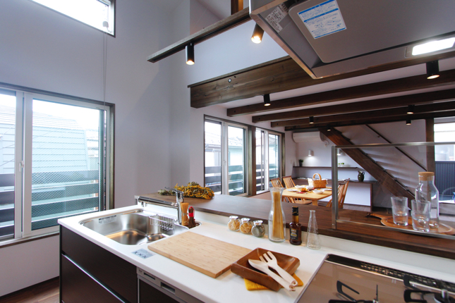 キッチンの上は吹き抜けになっており、開放感抜群。