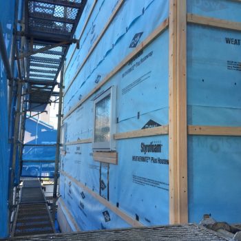 上棟後は大工さんが構造金物を取付たり、天候を考えながら外回りを固めてゆくとき。