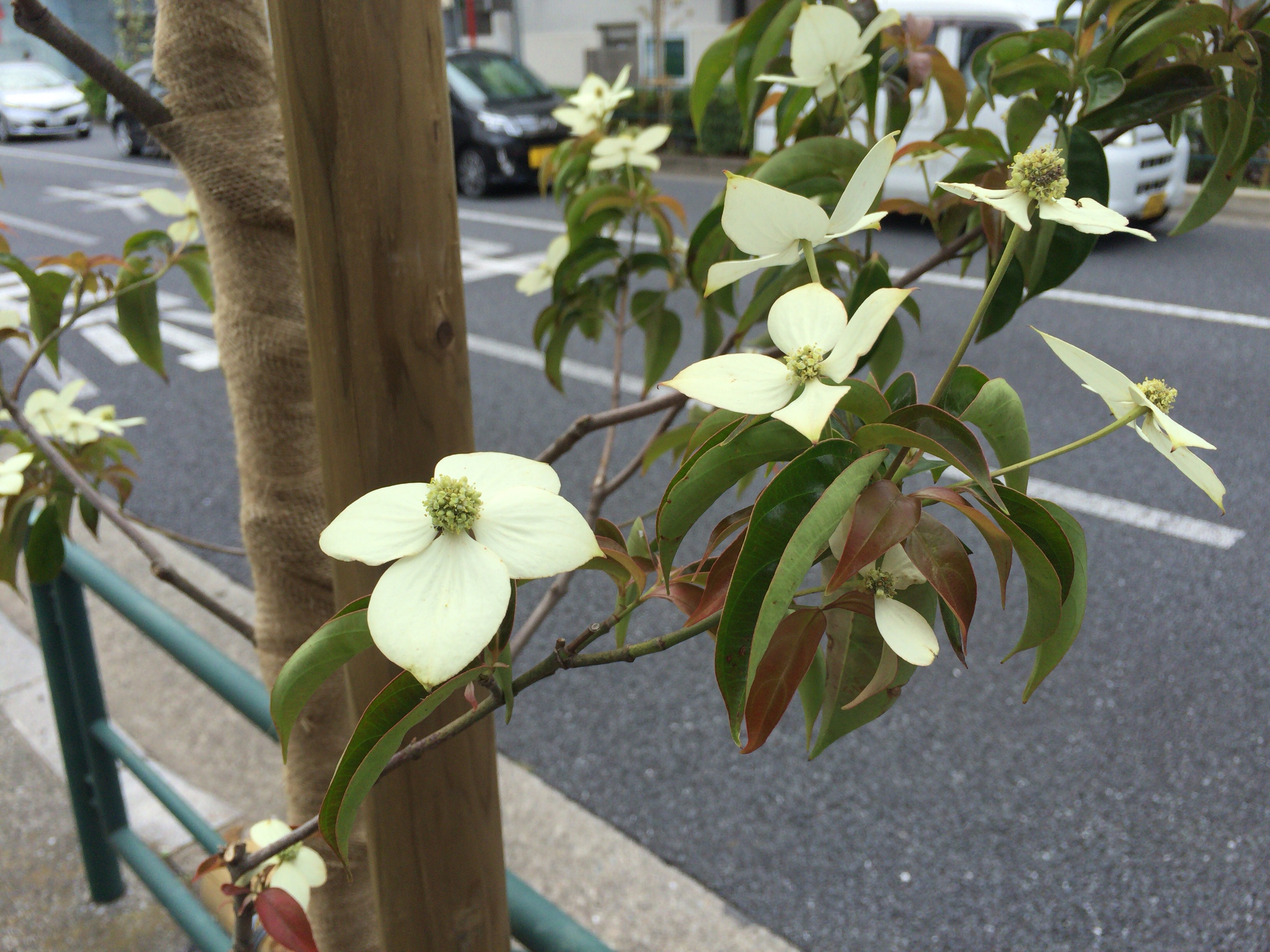 新青梅街道の開花した新しい街路樹「常緑やまぼうし」が見送ってくれました。