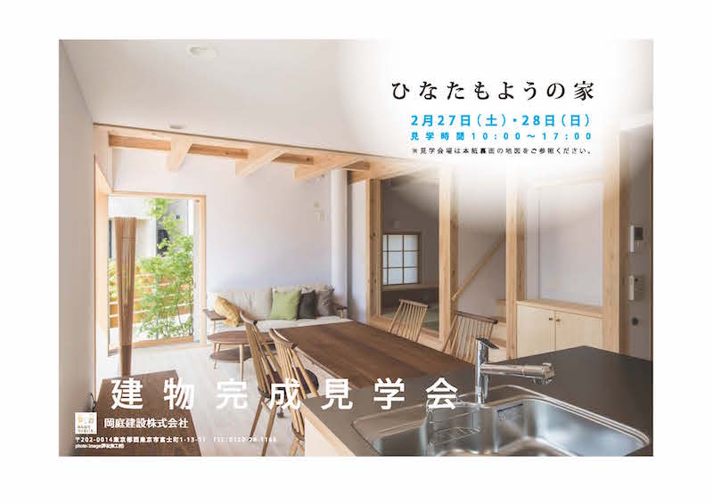 本日は2月27日、28日に国分寺市にて開催致します 建物完成見学会のご案内です