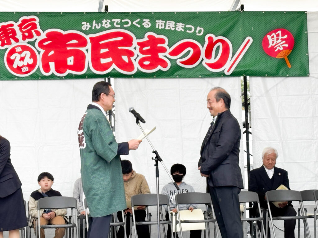 そして、この市民まつりの期間中である9日(日)に、「にしとうきょう 環境アワード」の授賞式が行われ 池澤市長より表彰状をいただきました!