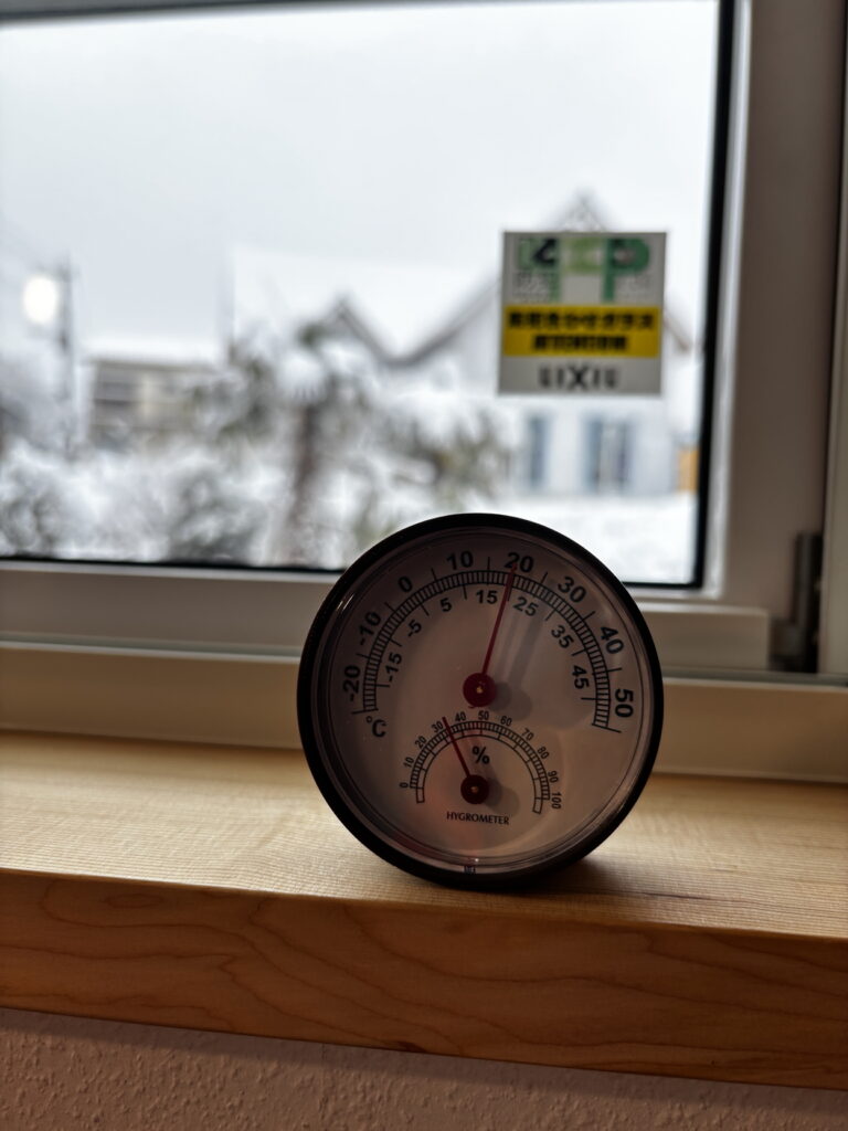 ところが、一歩室内に入るとそこは別世界。 玄関ですでに20度、LDでは25度を記録。