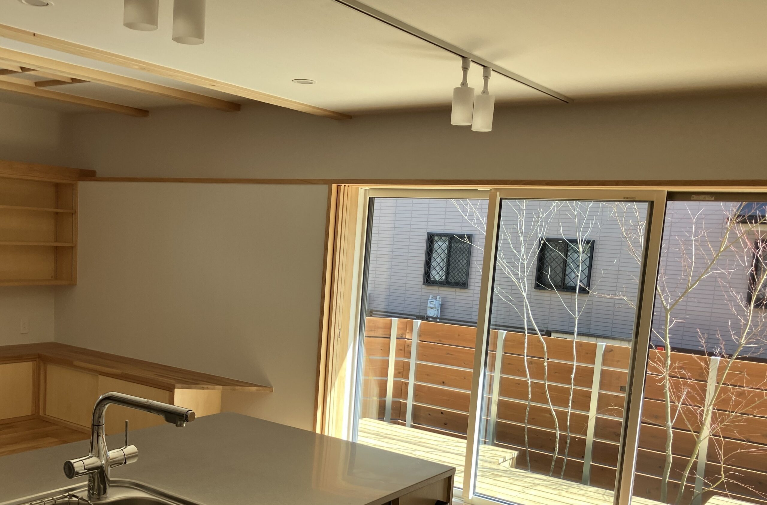 お料理をしながらお庭の木々が楽しめるようにアオダモとモミジを植えました。今はまだまだ控えめなお姿ですが、葉が生い茂る季節が待ち遠しいです!(^^)!