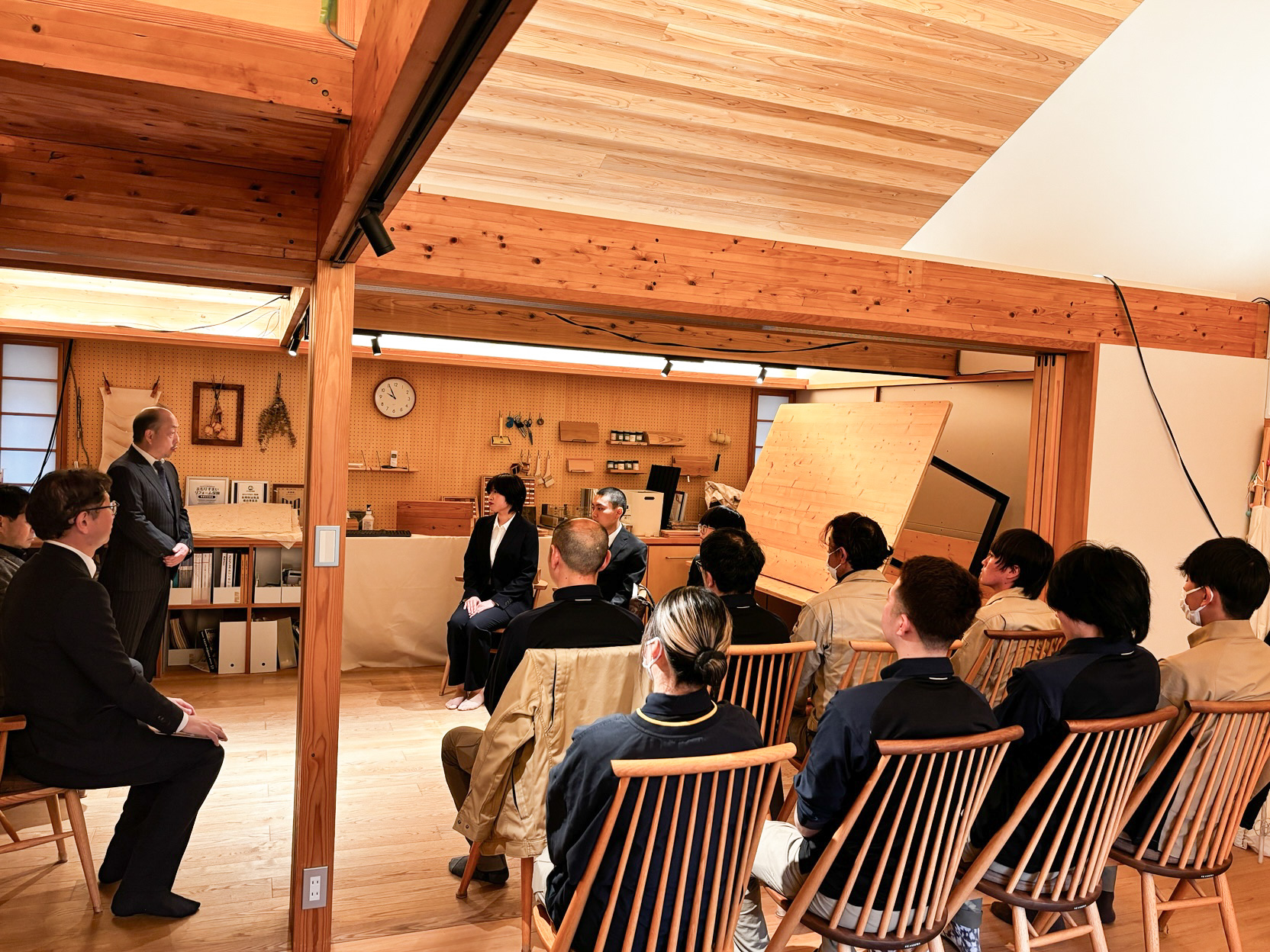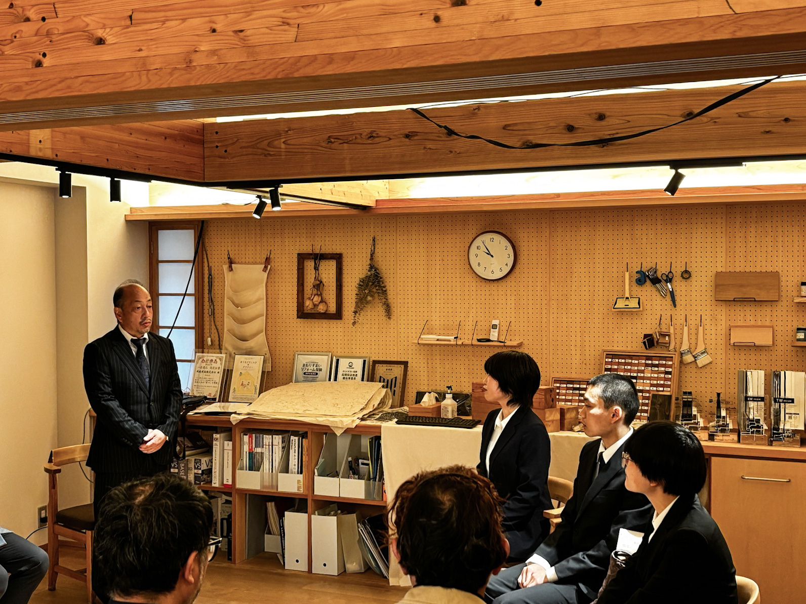 少し緊張気味の新入社員を、温かく、時には職人らしいキリッとした眼差しで見守る姿が印象的でした。