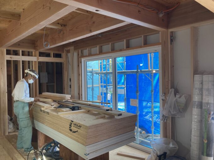 こんにちは!設計の秋吉です! 基礎工事ばかり投稿続きでしたがほかの現場も工事進んでおります^^笑 多摩市のひだまりの家も上棟しサッシが取りつきましたーー!! 最近は性能を意識して窓を少なくしたいという考え方もありますがこれから長く住まう空間で太陽の光を浴び、風を感じれるおうちでありたいというご要望のもと南に大きくひらけた敷地を生かし、南面の窓はめいいっぱい大きく計画しました。 ただ大きくするだけでは真夏の暑い日差しが室内に入ってしまいエアコンの効率もよくないことから日射をコントロールできるようにサッシの上部には庇を設け夏の日射対策も万全です! 現場ではベテランの太田大工、佐久間大工に現場のいろはを色々教えていただきながら今後に生かしていける部分を私もまだまだ勉強中です! 風が抜けて心地いい空間になるといいなと思いつつ完成まで駆け抜けます!! でわでわ^^
