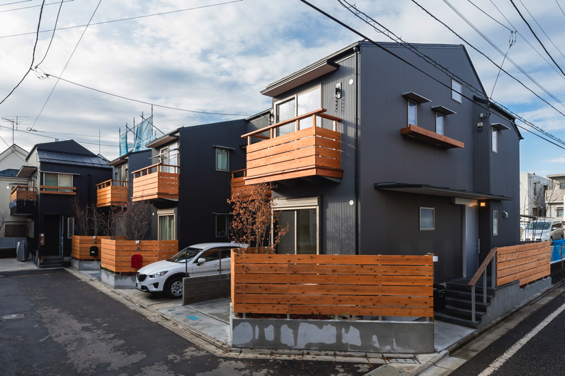 文字通り4軒の家が連なっています。そう、おかにわがつくる分譲住宅なんですね。