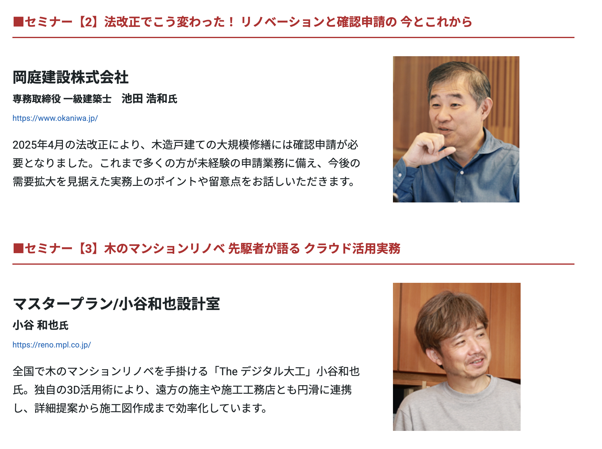 ◯そして私が担当するセミナー2では、「法改正でこう変わった!リノベーションと確認申請の今とこれから」というテーマでお話しさせていただきます。