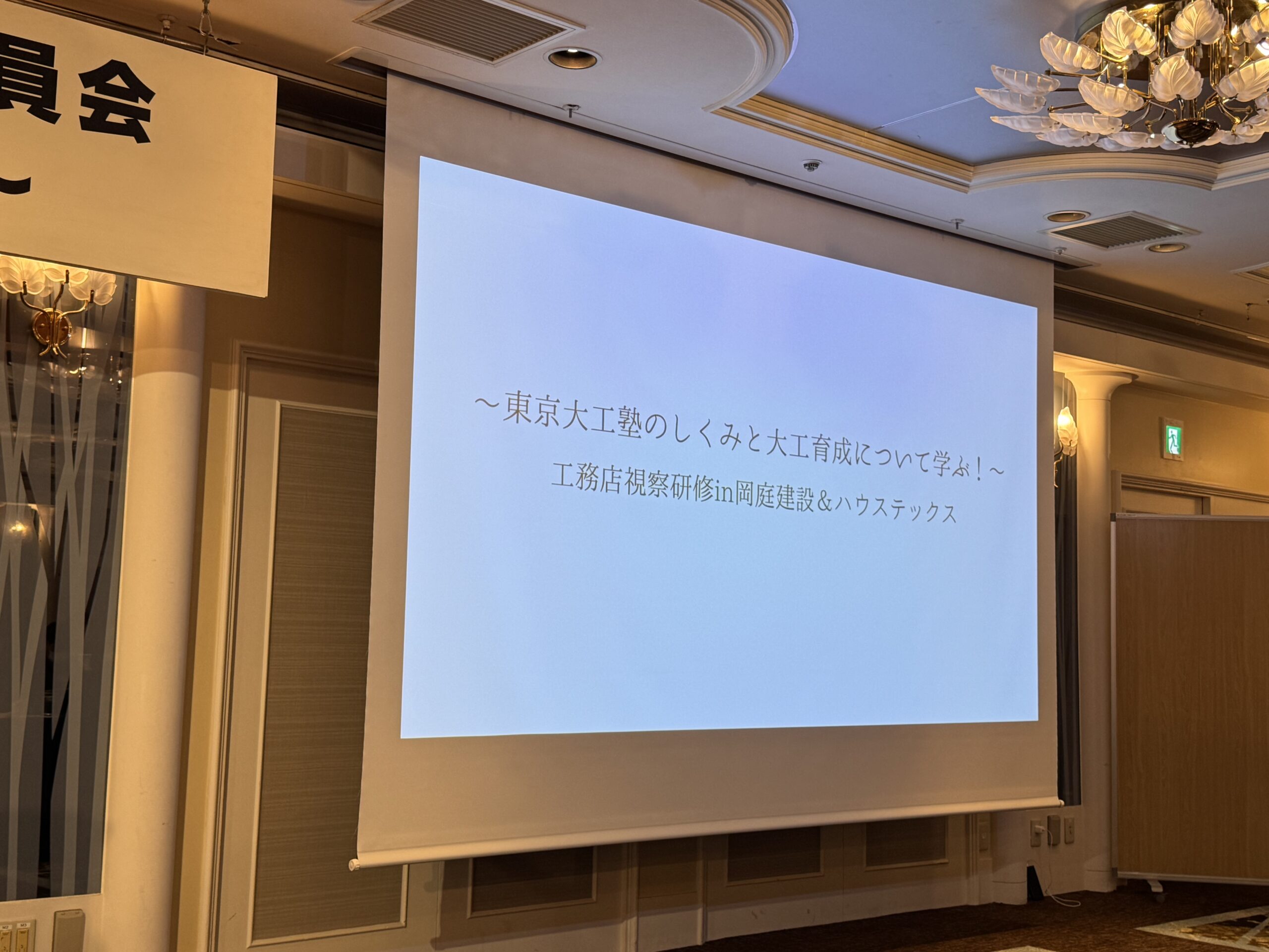 今回の視察研修会の主なテーマは「東京大工塾の大工社員大工育成の取り組み」です。北は北海道から南は九州まで、すでに社員大工を育成している工務店や、これから育成を始めようとしている工務店など、約80名もの仲間たちが東京に集まりました。大工の高齢化と担い手不足が深刻化する中、各地の工務店がそれぞれの地域で、この課題にどう向き合っているのか。そんな想いを持った経営者や担当者の皆さんの真剣な眼差しが印象的。