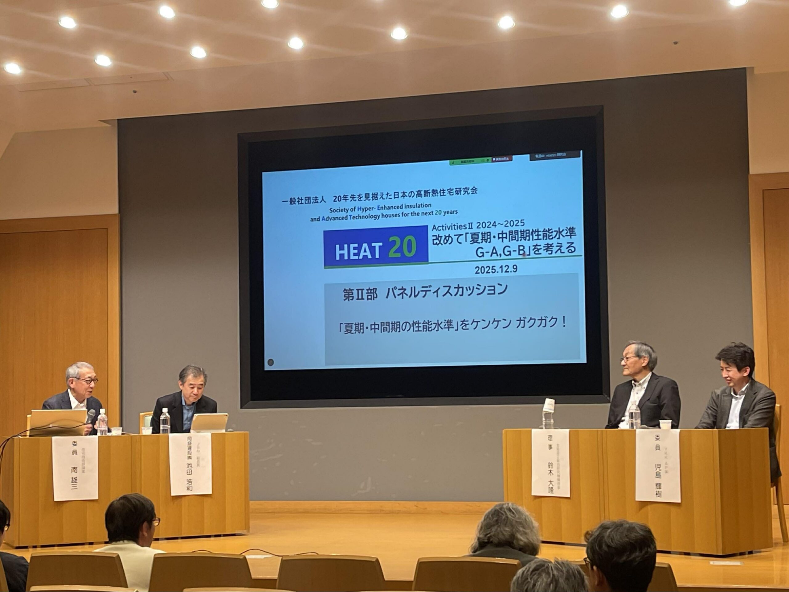 建築技術の先を見据えた取り組み団体でもあるHEAT20。先日、そのHEAT20のシンポジウムにパネラーとして登壇させていただきました。テーマは、これからの住宅における「夏期・中間期」の性能について。実は、このテーマは私自身にとっても大きな学びの機会となりました。