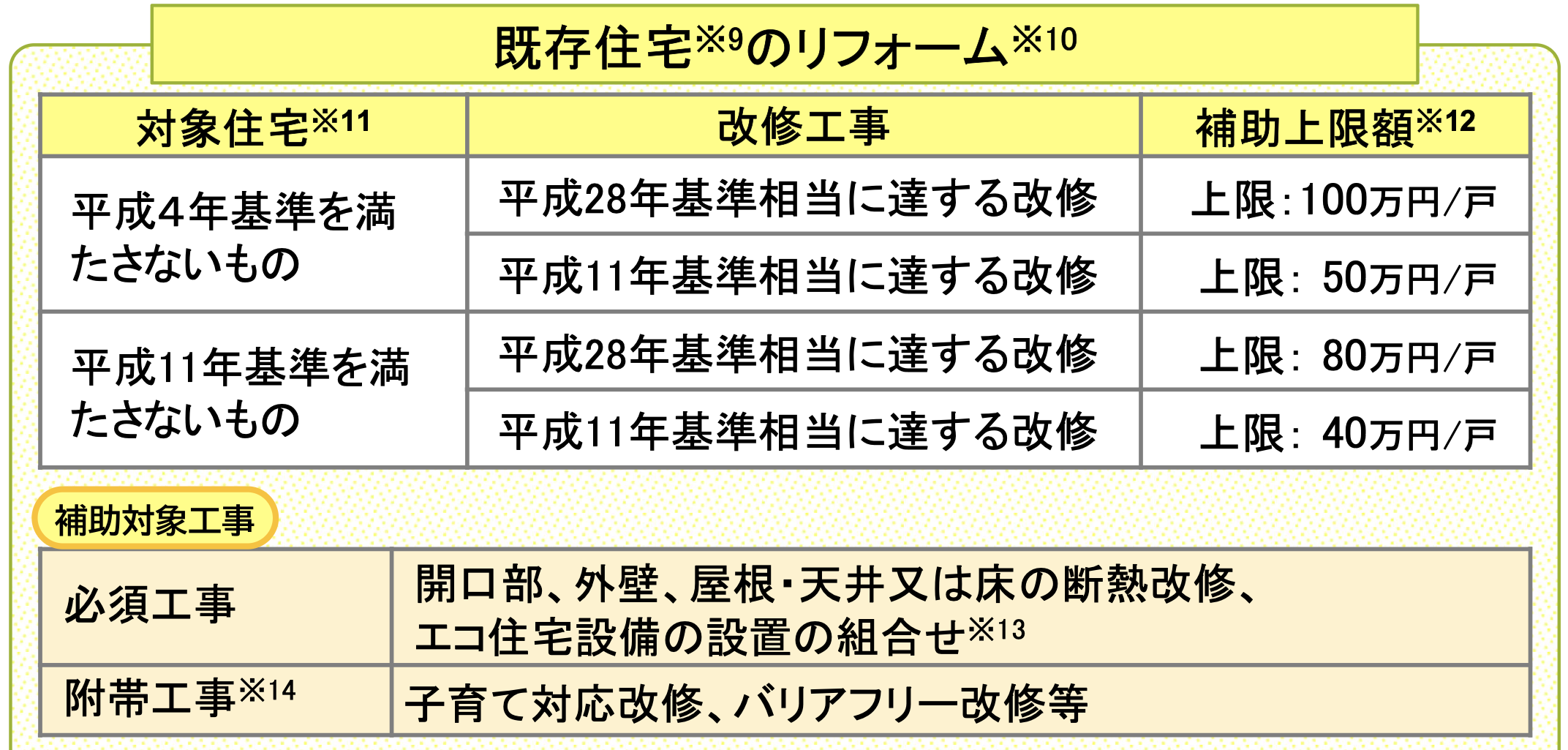 新築だけでなく、既存住宅の省エネリフォームも補助対象となっています。
