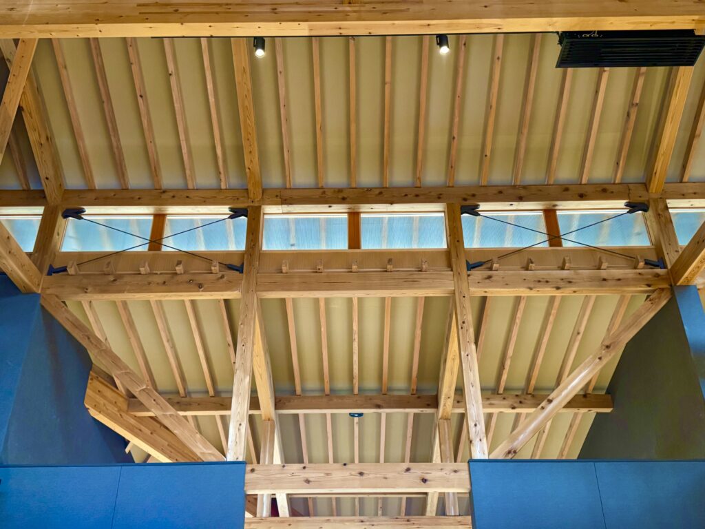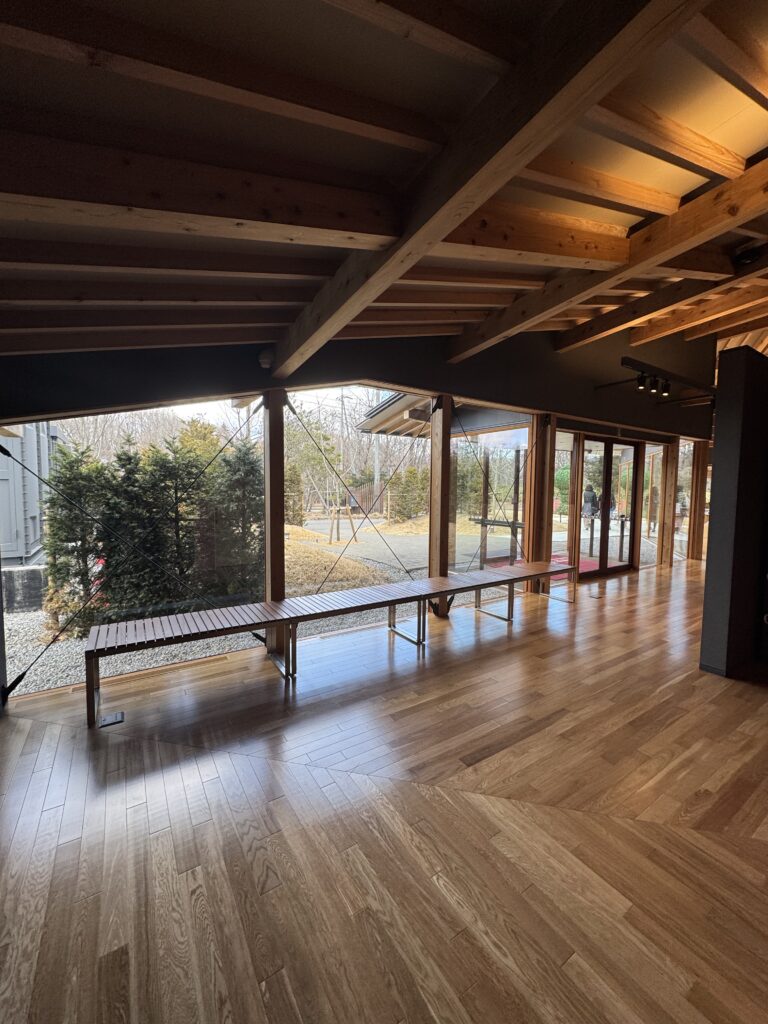 木造でありながら、大きな窓と内外の連続性を実現しているこの建物から、住宅設計のヒントも多くもらいました。木造建築では耐震性能を確保しながら開口部を大きく取ることは容易ではありません。しかし、構造計画を丁寧に行えば、採光・通風・眺望を確保しながら、耐震等級3を維持することも十分に可能です。そのようなことが本施設のあり方からも見えた気がします。(住宅でないので耐震等級はないですが)