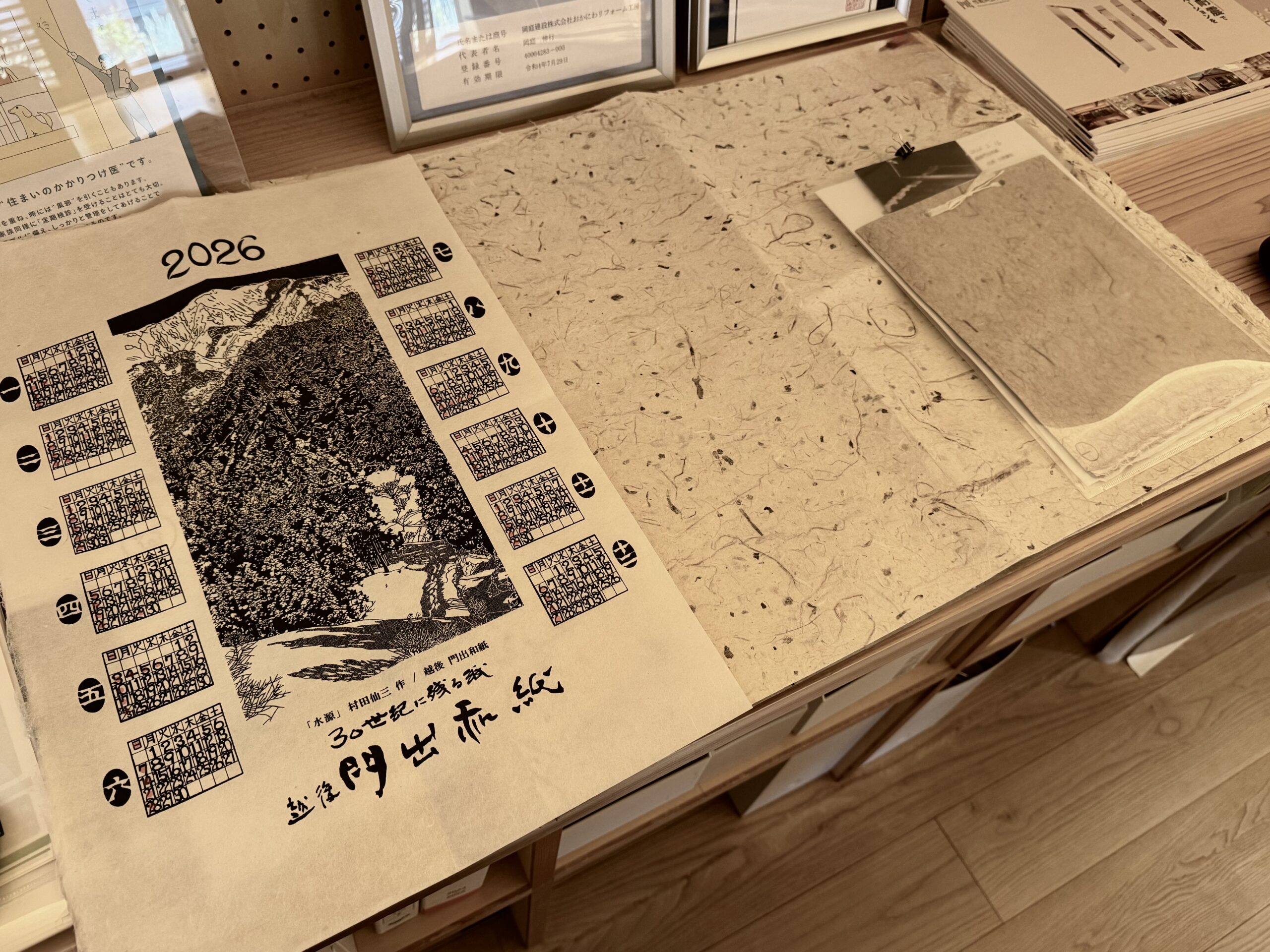 今後は、ふじまちテラスの壁の一部にも貼る予定です。ふじまちテラスにはサンプルもご用意しておりますので、ぜひ実際に手に取ってご覧いただければと思います。「こういう素材を家づくりに使いたい」と感じてくださる方がいらっしゃれば、ご要望に応じて住まいづくりに活かしていきたいと考えています。新潟の雪国で丁寧に漉き上げられた、本物の和紙。その豊かな表情を、ぜひ一度体感していただけたら嬉しいです。