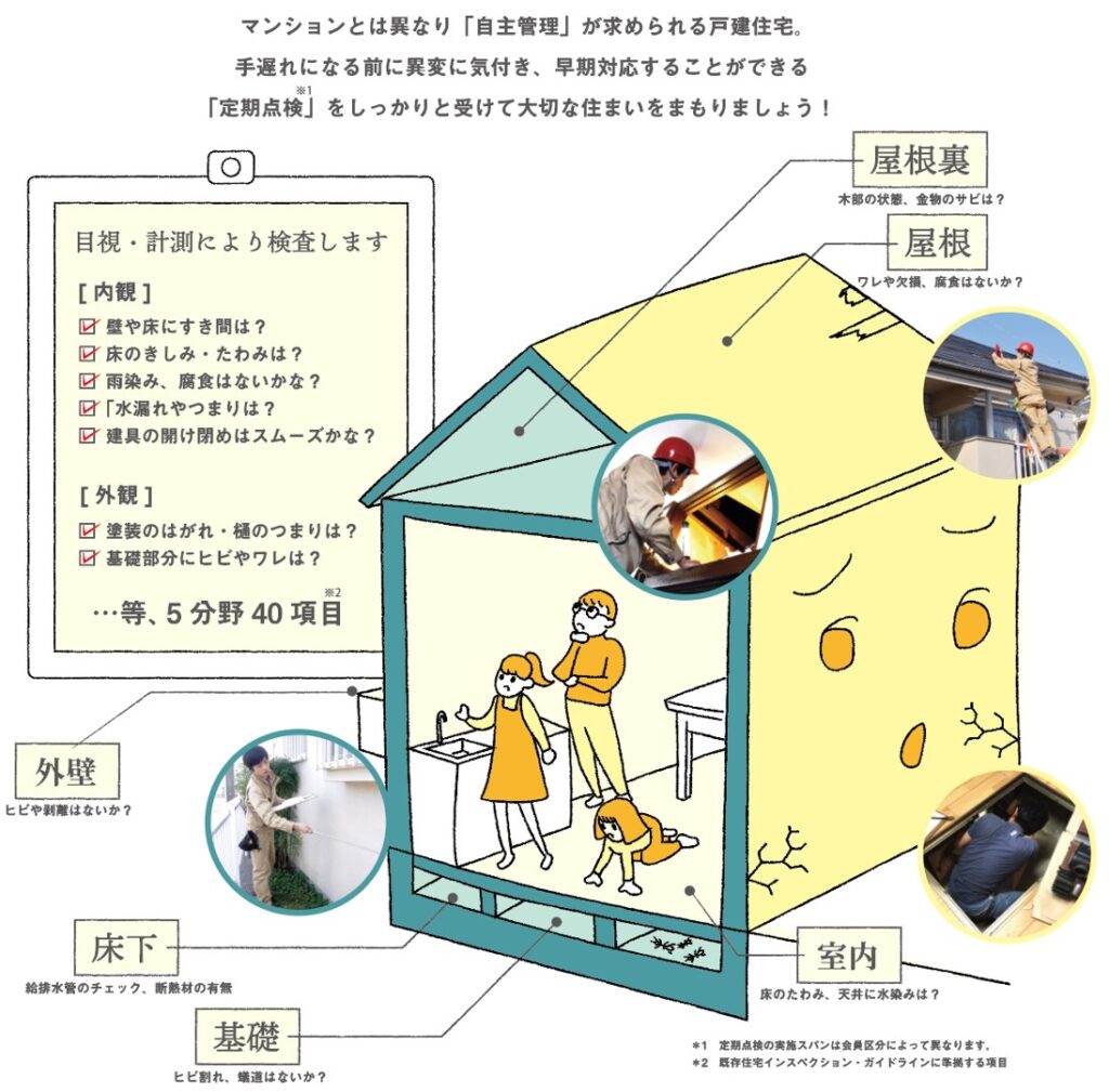 住宅は引き渡し後に年数を重ねるほど、維持・管理(メンテナンス)が重要になります。私たちは「造って終わり」ではなく「住み続けてからどう守るか」に注力しています。何か不具合があったら行う補修対応だけでなく「定期的な点検(人でいう健康診断)・維持管理」で住まいも一緒に長生きしてほしいですから。