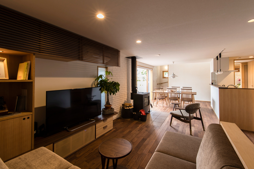リビングダイニングの床材にはウォールナット無垢材を使用しています。