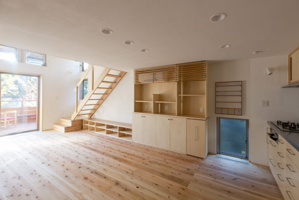 むさし関の山荘|練馬区 DETAILS 建築地 東京都練馬区 敷地面積 32坪 延床面積 22坪 TAGS 20坪-25坪ウッドデッキ2階建て傾斜地造作家具長期優良住宅 敷地の差をいかした「むさし関の山荘」 道路より1Mほど高い場所にある敷地 恐らく道路が切り開かれ通ることによって、この敷地に段差ができたのでしょう その大昔は、浅い山のような起伏があった場所なのかもしれません。 もともとの地形に建つべき姿を作り上げ この地に本当に存在するべき建築と暮らしが街へと繋がります。 その他の施工事例 あきっこのいえ|東村山市 25坪-30坪ウッドデッキ造作家具パッシブ冷暖東京ゼロエミ住宅 受け継いで暮す「猫と本の家」|練馬区 10坪台木ノベーションペットと暮らす造作家具リノベーション 緑道のオアシス|世田谷区 店舗併用住宅ブックカフェ店舗2階建て趣味を楽しむ 一覧をみる