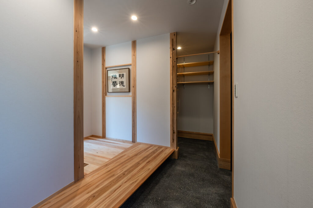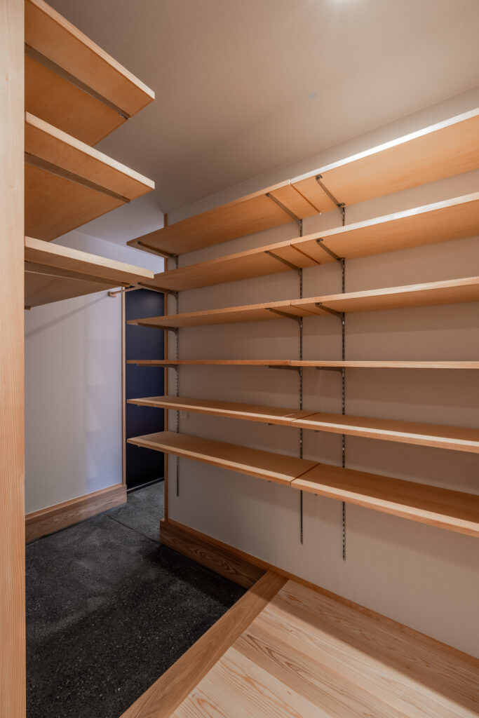 広い土間空間は趣味やアウトドア活動を楽しむお施主様たってのリクエストで、作業用シンクを設置し、釣った魚をさばいたり趣味に没頭できる居場所にデザインしました。