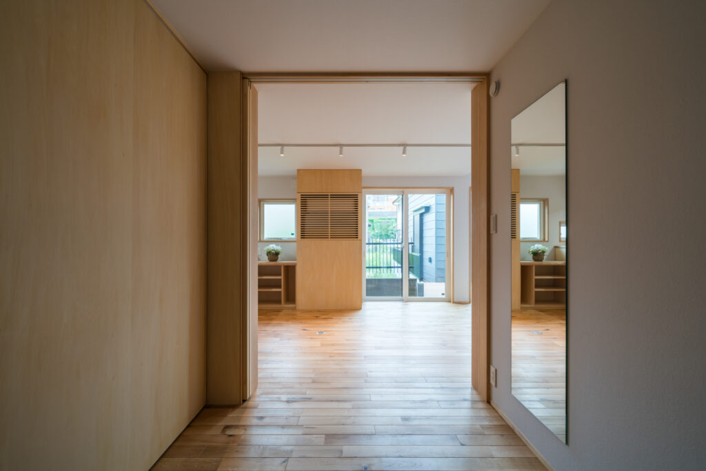 親世帯、子世帯、そしてお孫さんの6人が、それぞれの時間を大切にしながら、一つの屋根の下で響き合う二世帯住宅です。