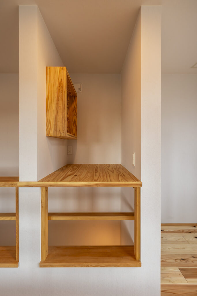 ダイニング脇のカウンターは、リモートワークやお子さまの学習スペースとして活躍。 同じ空間で家族が自然とつながれる設計です。
