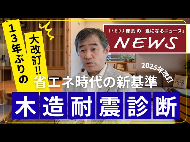 東京都の太陽光パネル設置義務化について【隊長の「気になるニュース」】 IKEDA隊長チャンネル住宅性能 その他の動画 【IKEDA隊長が解説】13年ぶりの大改訂!省エネ時代の「木造耐震診断(2025年版)」とは? IKEDA隊長チャンネル 動画をCheck! 【IKEDA隊長が解説】月々の返済が減る?新制度「残価設定型住宅ローン」の仕組みとメリット・注意点 IKEDA隊長チャンネル 動画をCheck! ふじまちテラスで撮影した【GO!YKK AP】 Episode5「性能向上リノベーションってなに!?」 くらしMovie(おかにわファミリー)住宅性能中古家づくり 動画をCheck! 一覧をみる