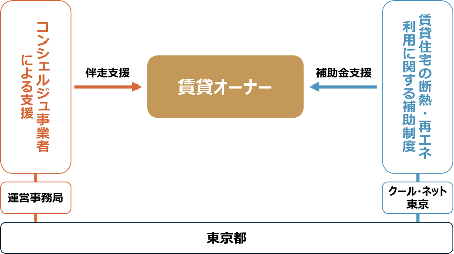 都内で賃貸住宅を棟単位でお持ちのオーナー様に、東京都登録のコンシェルジュ事業者が、省エネ性能診断から断熱改修の実施まで中立の立場で伴走支援します。